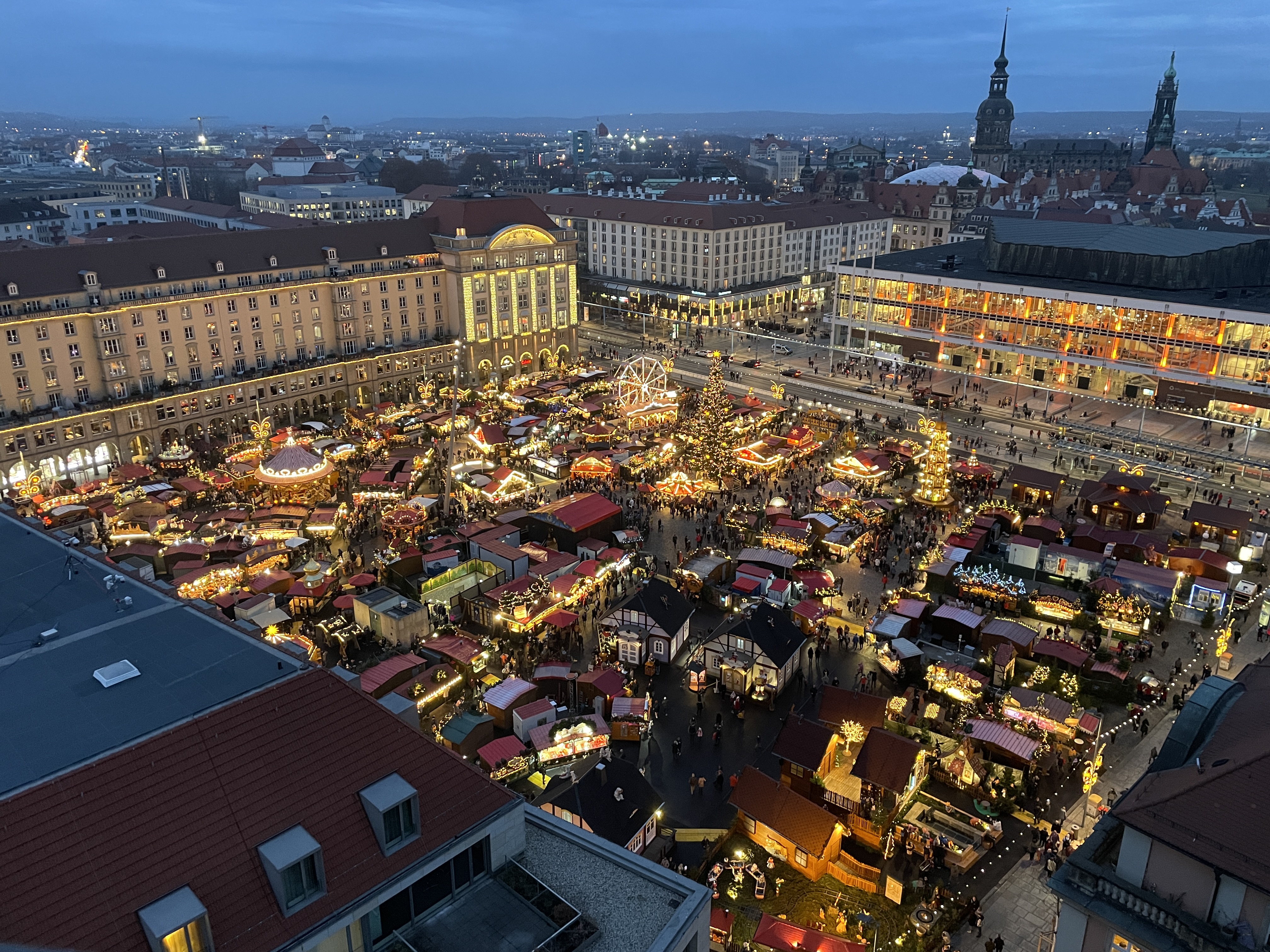 드레스덴을 쭉 둘러보다가 날이 어두워지기 시작해서 알트마르크 광장이 보이는 크로이츠 교회 전망대를 올라갔어요! 사실상 드레스덴에 이거 보러 왔었는데 조금 일찍 올라갔을 때는 이제 막 마켓에 불이 들어오기 시작했고 점점 어두워지니까 진짜 이쁘더라구요! 완전히 어두워졌을 때보다 파란 하늘빛이 보이는 마켓 야경이 진짜 예뻤어요! 야경 좋아하시는 분이라면 꼭 한 번 가보시라고 추천해드려요!