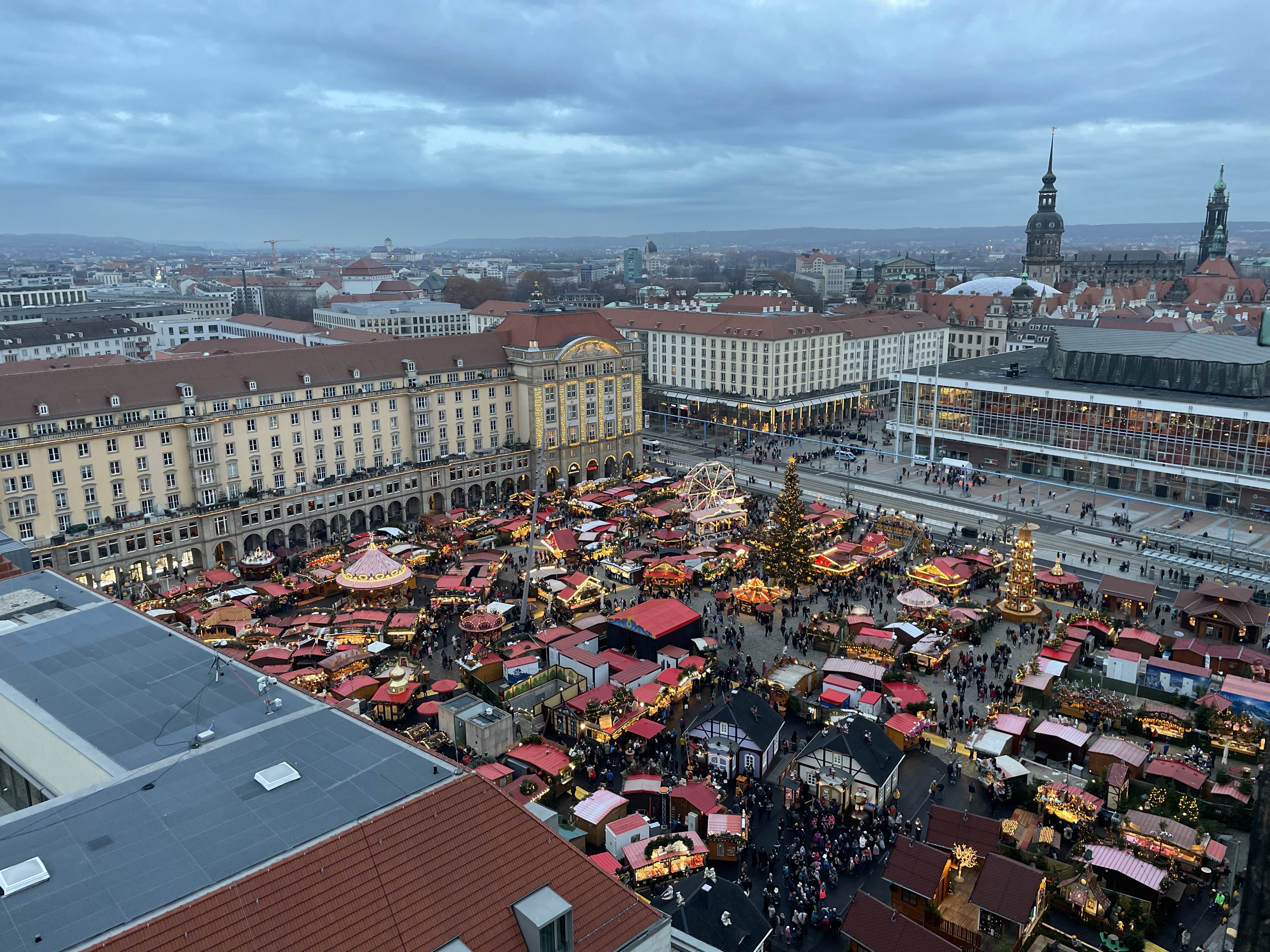 드레스덴을 쭉 둘러보다가 날이 어두워지기 시작해서 알트마르크 광장이 보이는 크로이츠 교회 전망대를 올라갔어요! 사실상 드레스덴에 이거 보러 왔었는데 조금 일찍 올라갔을 때는 이제 막 마켓에 불이 들어오기 시작했고 점점 어두워지니까 진짜 이쁘더라구요! 완전히 어두워졌을 때보다 파란 하늘빛이 보이는 마켓 야경이 진짜 예뻤어요! 야경 좋아하시는 분이라면 꼭 한 번 가보시라고 추천해드려요!